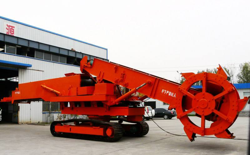 斗輪取料機,是指一種用于大型干散貨堆場的既能堆料又能取料的連續(xù)輸送的高效裝卸機械。由可俯仰和水平擺動的膠帶輸送臂及其前端的斗輪、機架、運行機構組成,膠帶可雙向運行,取料時由斗輪取料經(jīng)輸送臂送出,堆料時則由主輸送機運來的貨物經(jīng)由輸送臂投向堆場。